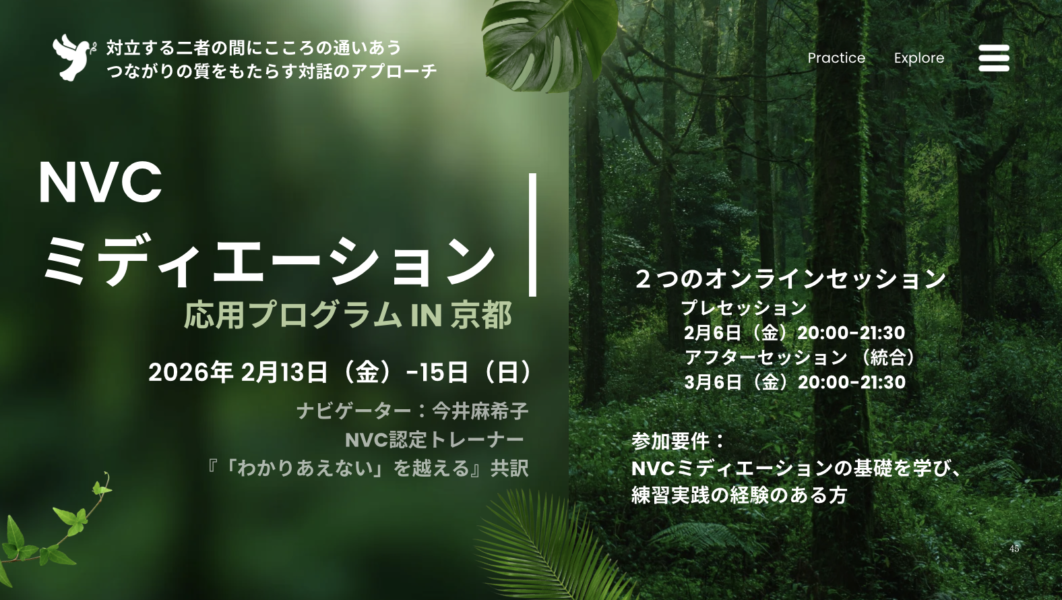 自らを研ぎ澄ますことが時代を拓く鍵となる。変革の時代の精神的基盤と注目されるNVCを現場ニーズに応じて実践的に深めます。